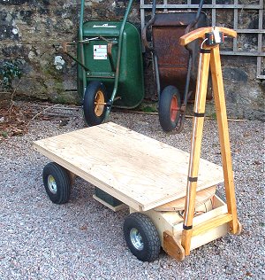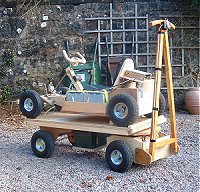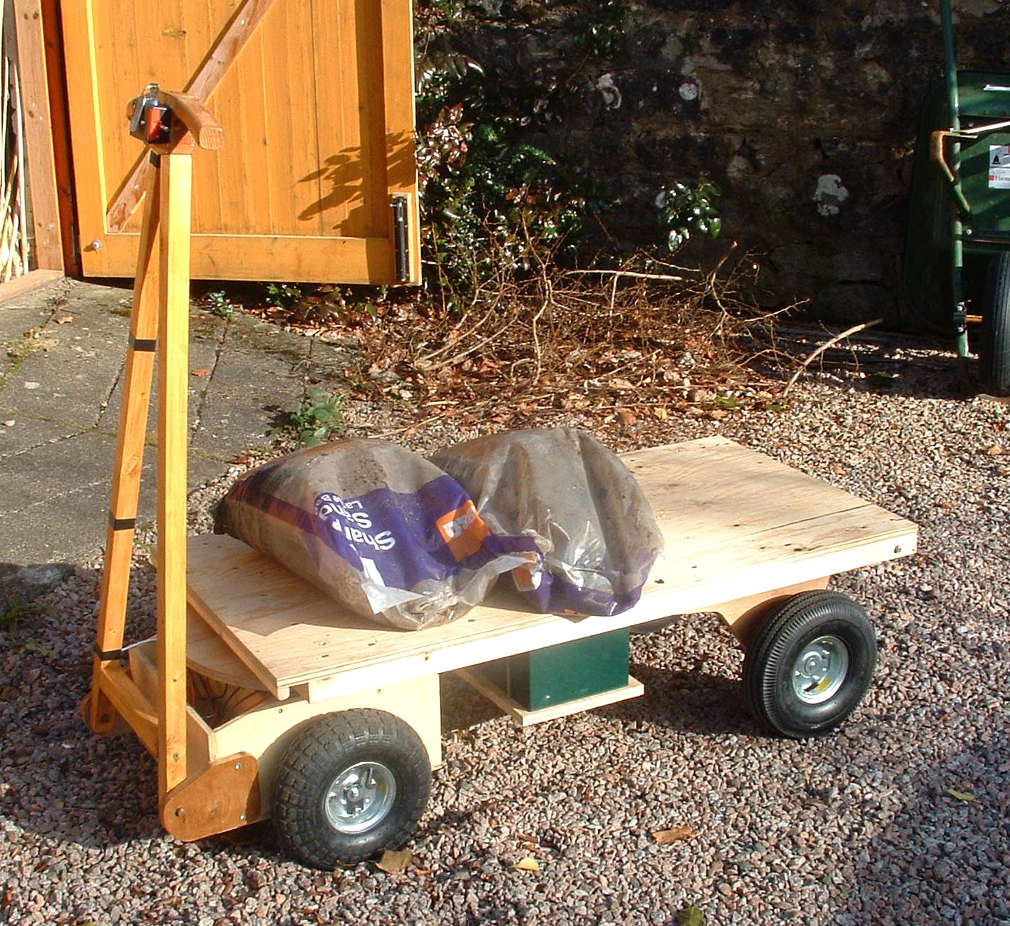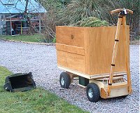 For easy operation I tried fitting the wagon with a finger operated wig-wag (joystick) type speed and direction control on the tiller handle. Operation can be either single or double handed. Properly built the wagon is suitable for lighter domestic garden or yard duties and