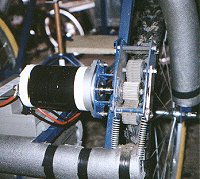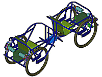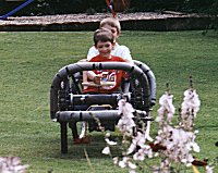 easily. The vehicle design works well. The 4WD is effective in propelling the vehicle on grass, gravel, soil etc and on gradients. Steering is effective and frame articulation is effective in maintaining wheel/ground contact on uneven surfaces. Top speed and acceleration are impressive for a childrens' buggy. The principal weakness of the design is the limited battery life. The batteries are discharged after about 1 hr 15 min continuous operation although this may take several hours to achieve given the stop-start way in which the Buggy is used. Whereas doubling the battery capacity is a practical solution the better design response is to address the underlying causes, which are vehicle weight and drive inefficiencies. Version two of the buggy is under development and incorporates significant improvements in these areas and others. © This site is copyrighted. If you'd like more information or have any comments please feel free to contact me at