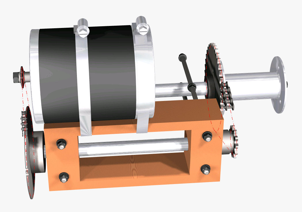the roller chain stage from the electric motor output shaft. The