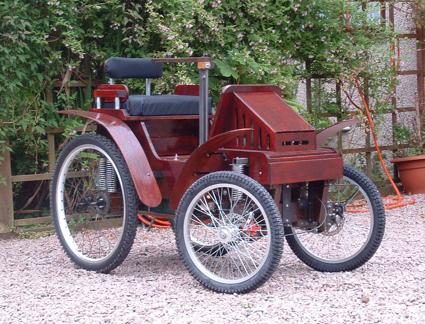 I thought I'd have a shot at a 3/4 scale electric version of the style of small car first produced around 1898 by Louis Renault in Paris but also made locally here in Scotland shortly after by the Argyll Motor Co. of Glasgow. This Type A car or "Voiturette"